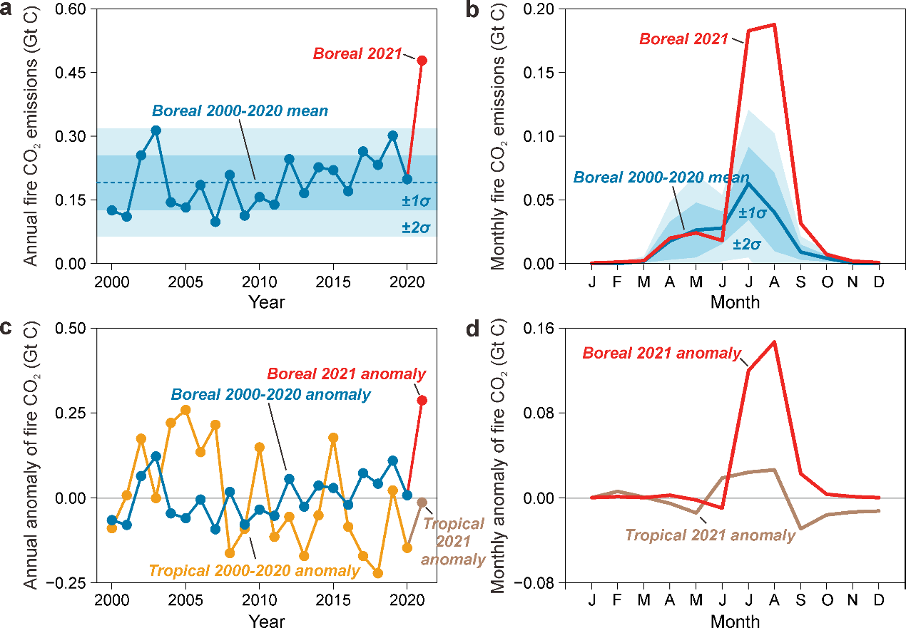 上述成果以“北方野火CO2排放2021年创历史新高”(Record-high CO2 emissions from boreal fires in 2021)为题,以研究论文(Research Article)形式发表在《科学》(Science)期刊上。