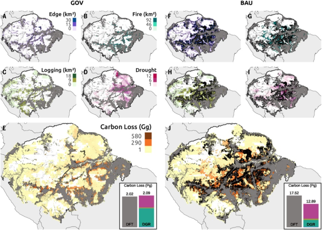 图3 通过其主要驱动因素,亚马逊雨林退化的2050年一阶预测