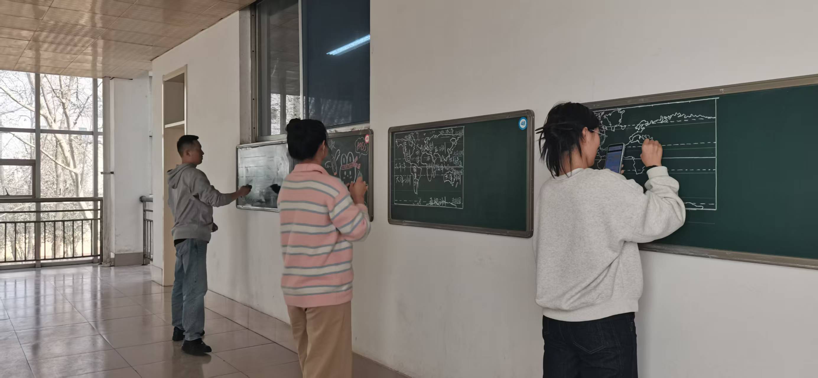 获奖作品在太阳成集团tyc33455长廊公开展览,成为教育硕士地理板书板画的实践案例。下一步,学院将持续推进此类赛事的开展,深化教育硕士教学技能训练,为培养“能讲善图”的地理教育人才夯实基础。