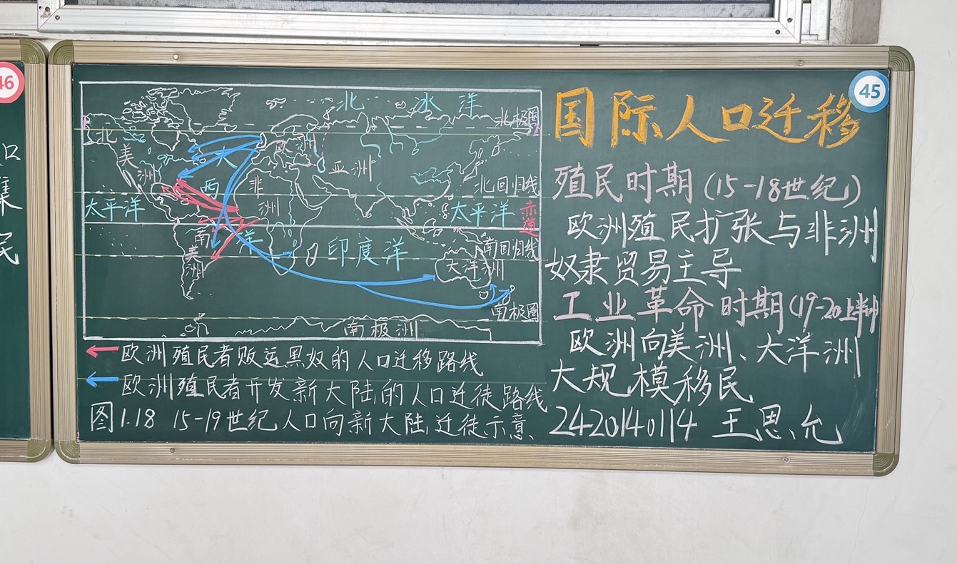 围绕比赛题目和要求,参赛研究生运用符号与色彩,开展了绘制大洲、大洋、航线及板书设计,呈现了学科严谨性和教学互动性,生动展现了地理图文结合的魅力。大赛评委从科学性、创新性、教学适配性等方面对参赛作品进行了评审。凭借扎实功底与创新设计,王思允等6名研究生分别获得一、二、三等奖。评委强调,优秀板书板画需兼具图文数据的准确性、视觉表达的清晰度及课堂实操的实用性,并针对“如何通过图示简化抽象概念”“如何激发学生空间思维”等提出建议,为参赛者指明提升方向。