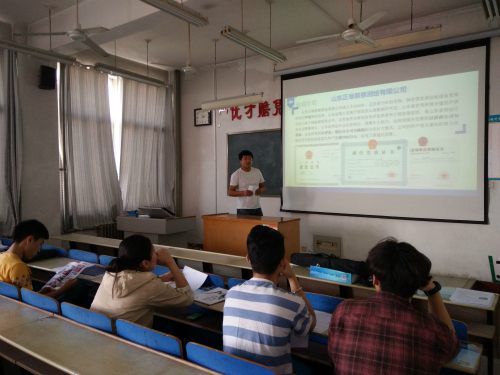 本次招聘宣讲首先由山济南泰乐信息技术有限公司人力资源部招聘培训经理向在场的同学播放了公司的视频宣传片,向同学们展示了济南泰乐信息技术有限公司自建立以来所拥有的资质和所获奖项,以及公司之前承接的各个重点项目向同学们一一做了介绍。随后两位培训经理分别以PPT的形式向同学们介绍了两家公司的规章制度、企业文化和薪资福利等问题,招聘培训经理对同学们最关心的专业是否对口问题,从招聘专业和人数角度做出了详细的解答。正维公司培训经理向同学们保证公司为每位员工提供发展的平台和成长的空间,在工作中有机会学习到地形图测量、城乡规划测量和房产测量等与城市建设相关的测绘业务。最后,两位招聘培训经理分别代表公司欢迎各位同学的加入。