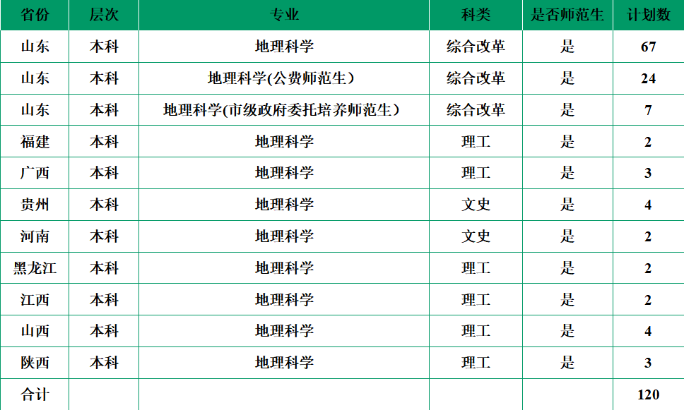 2020年太阳成集团tyc33455cc地理科学专业招生计划